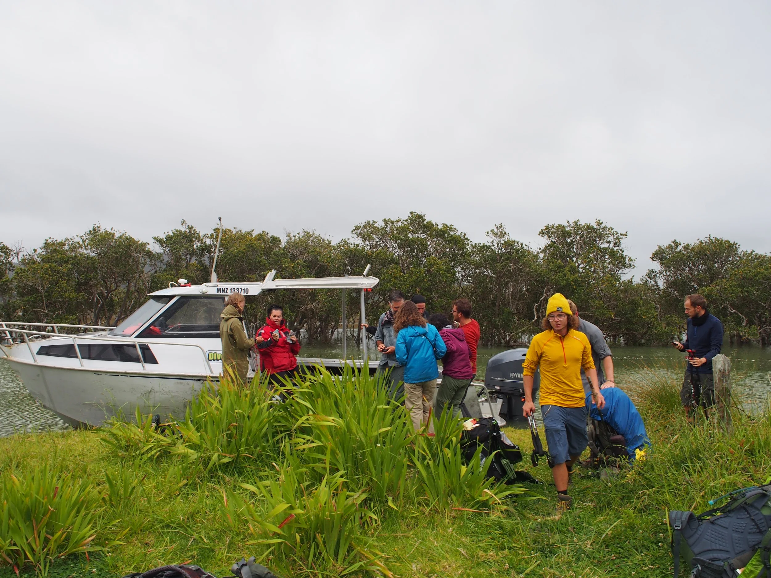Vesitaksi lähti Opuan satamasta kahdeksalta aamulla, kyyti piti ajoittaa nousuveteen, jotta vene pääsee Waikaren päässä matalan lahden pohjukkaan. 12 km matkaan meni vain puolisen tuntia, kyytiin tuli myös kaksi sveitsiläispoikaa, jotka olinkin nähnyt vilaukselta reitillä.