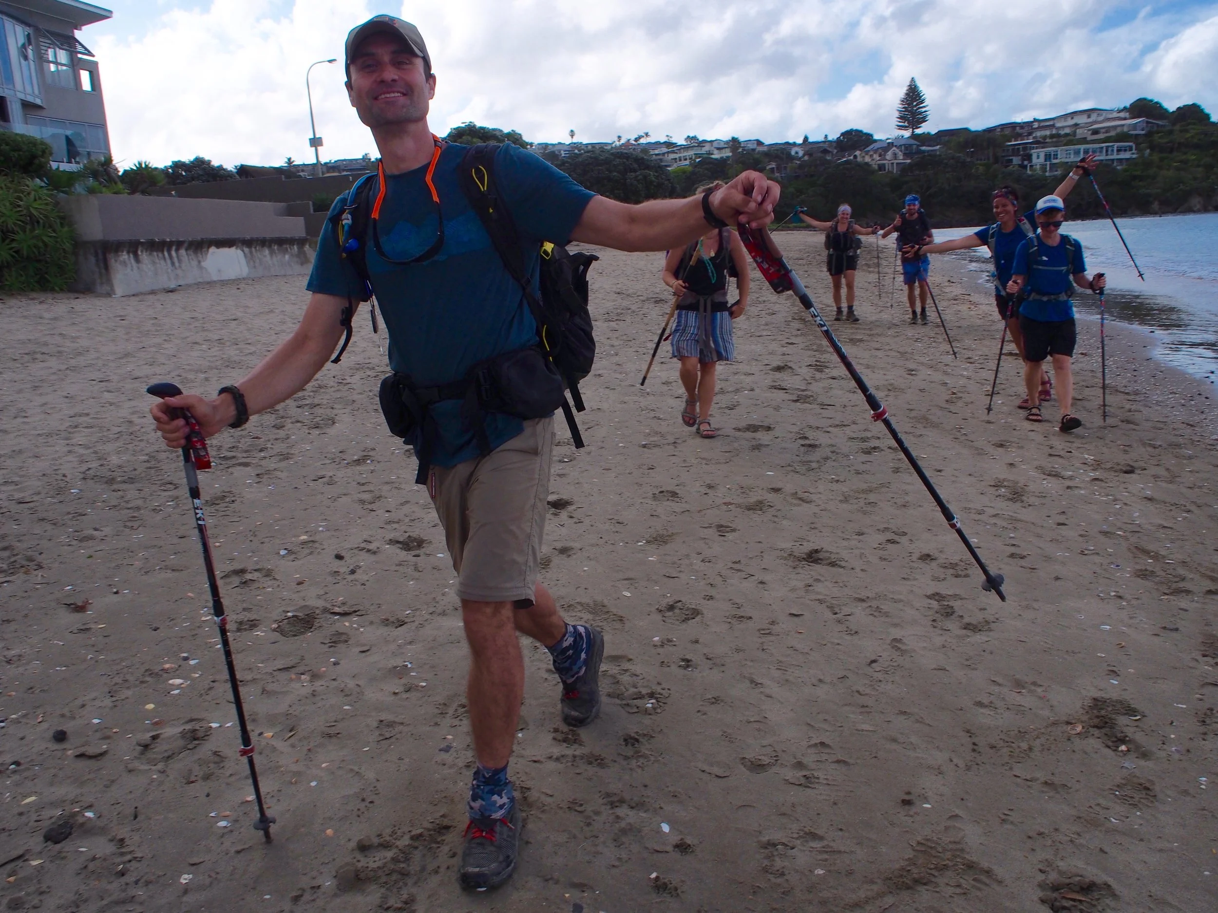 Aamulla sain heräillä ihan rauhassa 11 tunnin yöunien jälkeen, koska kolmen kilometrin päässä oleva Okura-joki olisi ylitettävissä vain laskuveden aikaan ja tänään se oli vasta puolen päivän aikaan. Emme tainneet löytää ihan sitä matalinta ylityspaikkaa, koska vesi oli syvimmässä kohdassa melkein kainaloihin asti. Ei auttanut muu kuin nostaa rinkka pään päälle ja kahlata eteenpäin. Onneksi en ollut tässä kohtaa yksin, kaikki pääsivät turvallisesti toiselle puolelle. Ylityspaikalla tapasin pitkästä aikaa chileläisen Claudian, joka aloitti vaelluksen Cape Reingasta samana päivänä kuin minä, mutta oli Herekinon metsän jälkeen ollut koko ajan noin päivän edelläni. Claudia oli löytänyt matkakaverikseen ruotsalaisen Olofin, jatkoimme matkaa yhdessä. Aloimme olla jo hyvin lähellä Aucklandia, reitti kulki välillä polkua rannan lähellä, välillä hiekkarantaa pitkin, poiketen silloin tällöin katuja pitkin asuinalueiden läpi. Päivä oli aurinkoinen ja lämmin. Onneksi, koska vaatteeni olivat läpimärät joen ylityksen jäljiltä. Kuljimme rauhallista tahtia, pysähtyen välillä lounaalle ja jäätelölle.