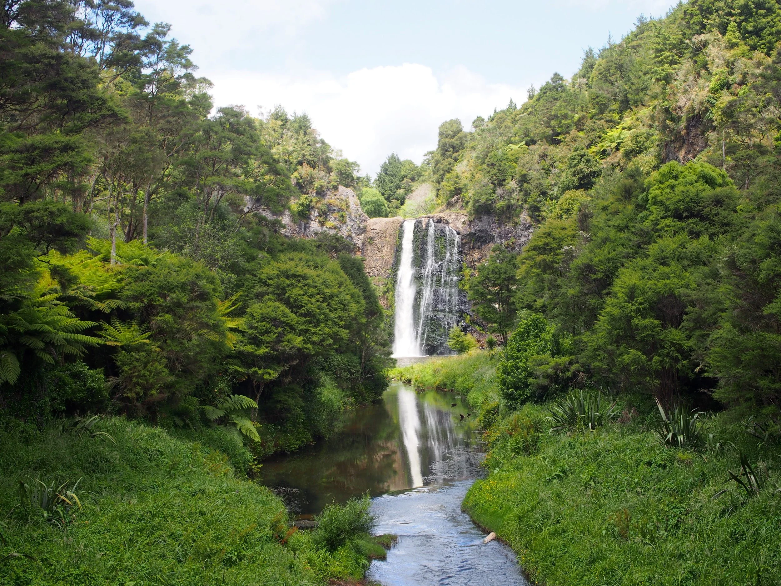 Juuri sopivasti lounasaikaan saavuimme Hunua Fallsin vesiputoukselle. Pussitonnikalakin maistuu yllättävän hyvälle kun sitä syö 30 metriä korkean vesiputouksen äärellä. Vähän putousten jälkeen törmäsimme polulla chileläiseen Claudiaan ja ruotsalaiseen Olofiin, heillä on selkeästi sama tahti kuin meillä, koska joka päivä näimme heitä jossain vaiheessa. Claudia ja Olof olivat matkalla samaan leiripaikkaan, Repeater campiin. Kilometreissä sinne ei ollut enää pitkästi, mutta Uusi-Seelantilaiset metsät tuntien siihen menisi kuitenkin paljon aikaa. Minulla ei ole mitään vaikeakulkuisia metsiä vastaan, niissä aika menee nopeasti ja koskaan ei tiedä mitä kulman takana odottaa! Anthony sen sijaan ei ollut metsien ystävä. Ainakaan näiden metsien. Viiden tunnin taistelun jälkeen saavuimme kaikki neljä DOC:in (Department of Conservation) leiriin, jossa oli katos nukkumista varten, sadevesitankki ja ulkohuussi. Claudia ja Olof olivat juuri ostaneet uuden teltan, joten he halusivat nukkua siinä, Anthonykin halusi telttailla, sain siis katoksen kokonaan itselleni. Jälleen kerran uni tuli jo melkein ennen kuin olin ehtinyt vetää makuupussin vetoketjun kiinni...