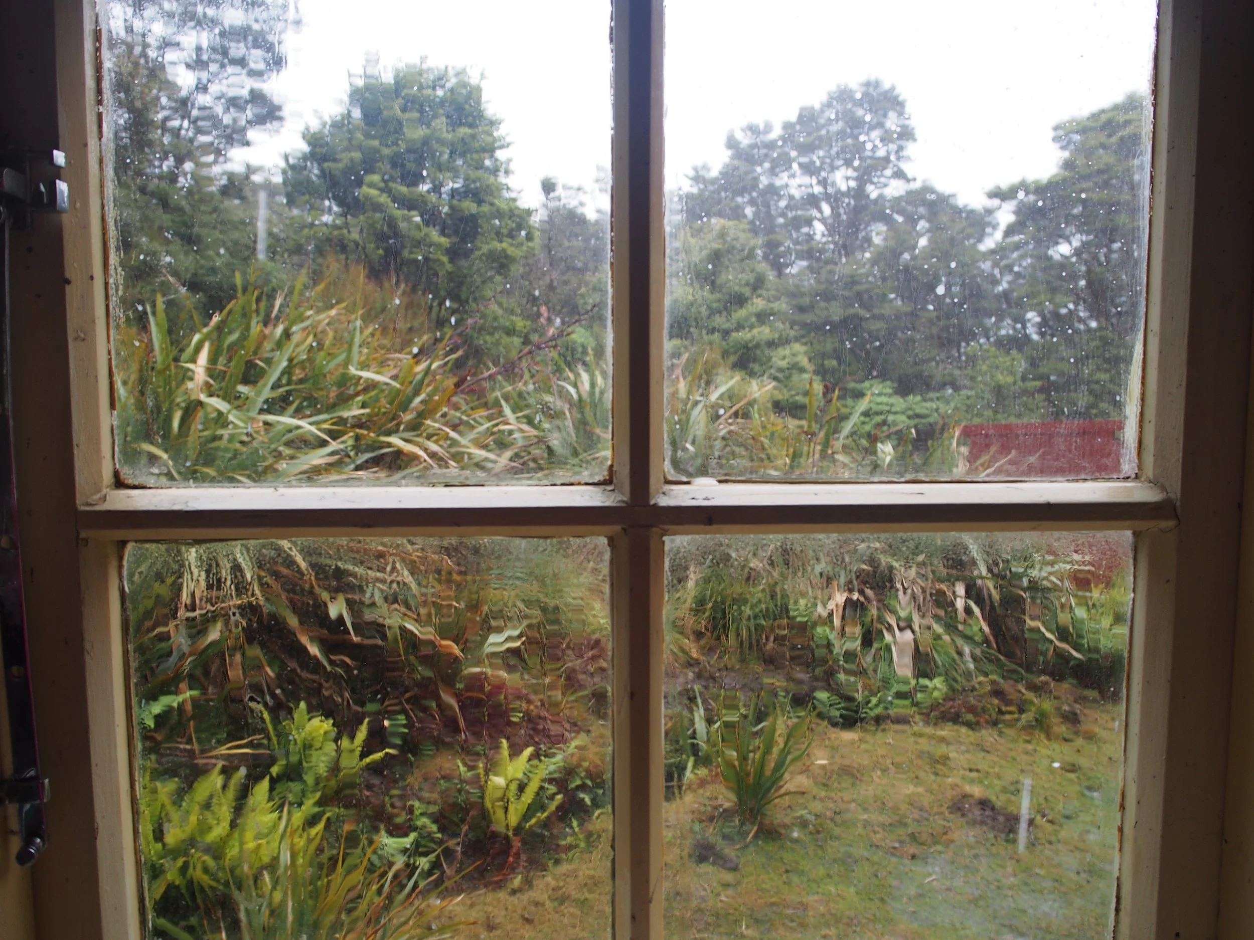 Seitsemän aikaan illalla näin jonkun vilahtavan ikkunan ohi, joku hullu oli kuitenkin lähtenyt tässä säässä kävelemään! Ja sehän oli vanha tuttu Griggs, jonka olin nähnyt viimeksi juuri ennen Aucklandia. Ilmeisesti häntä ei "pikku sade" haitannut. Majassa oli petipaikat 18 vaeltajalle, joten tilaa oli hyvin! Tuuli helpotti iltaa kohden, mutta sade ei. Ei auttanut muu kuin toivoa, että aamulla sää olisi parempi, seuraava pätkä olisi nimittäin kävelyä korkealla harjanteella, jossa ei juuri ole suojaa huonolta säältä.