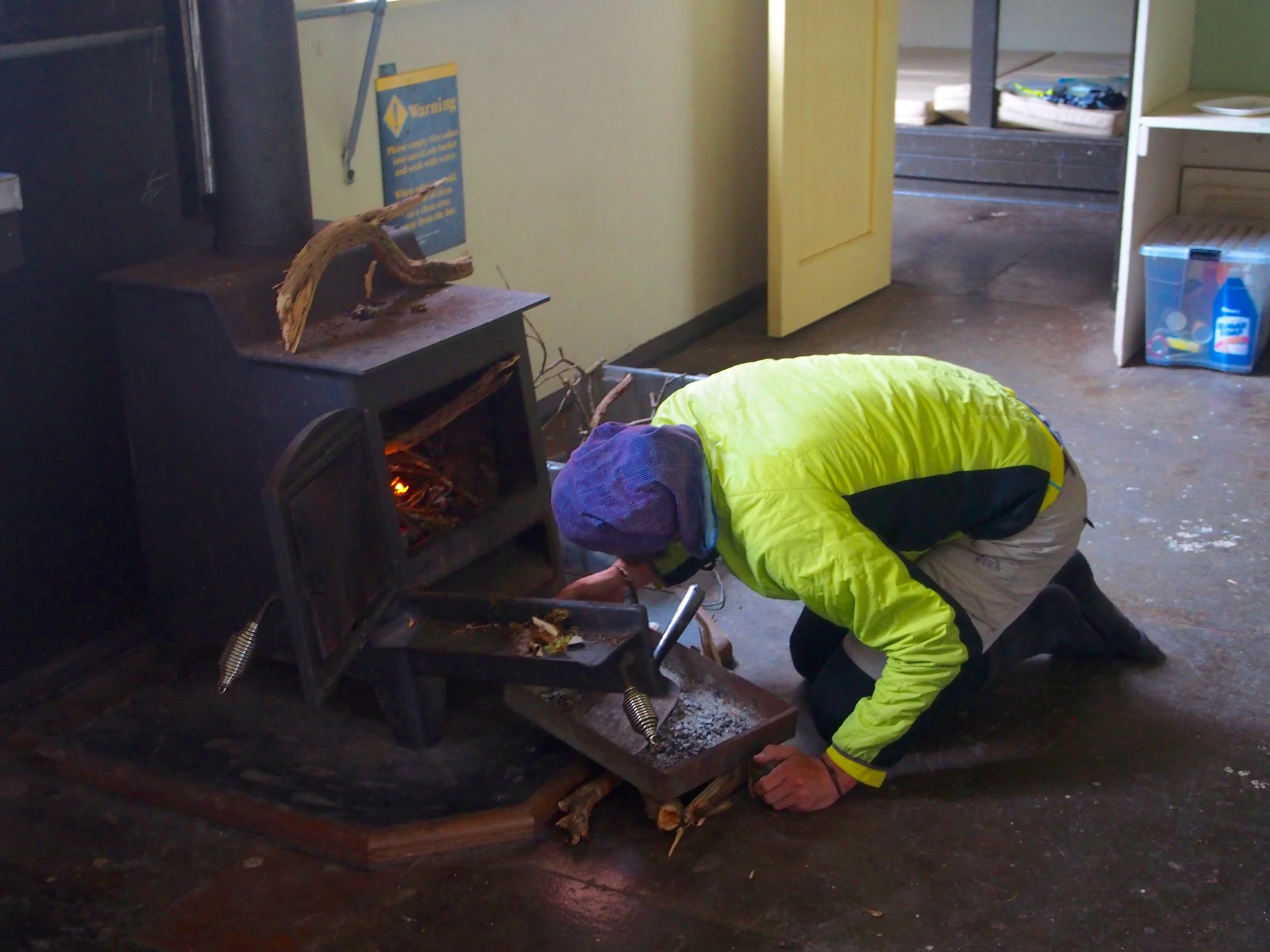 Neljän tunnin tarpomisen jälkeen saavuin Waitewaewaen tuvalle. Iso uusi tupa oli aivan joen varressa, olisi varmasti ollut kaunis paikka hienolla säällä. Ripustin märät vaatteeni naulakkoon kuivumaan ja istuin syömään lounasta. Täällä näytti olevan vähän paremman näköisiä polttopuitakin, niistä saattaisi saada tehtyä tulet kamiinaan. Griggs saapui paikalle, kun yritin saada puita syttymään, huonolla menestyksellä. En ymmärrä mikä näitä uusi-seelantilaisia puita vaivaa, en ole vielä kertaakaan saanut tehtyä tulia kamiinaan, vaikka olen siinä yleensä aika hyvä. Kai täällä vaan on niin kosteaa, tai sitten siihen tarvitsee jonkun salaisen kikkakolmosen, jonka vain paikalliset tietää. Puut kyllä syttyy, mutta palaa pienellä, heikolla liekillä ja sammuu hetken päästä, vaikka mitä yrittäisi.