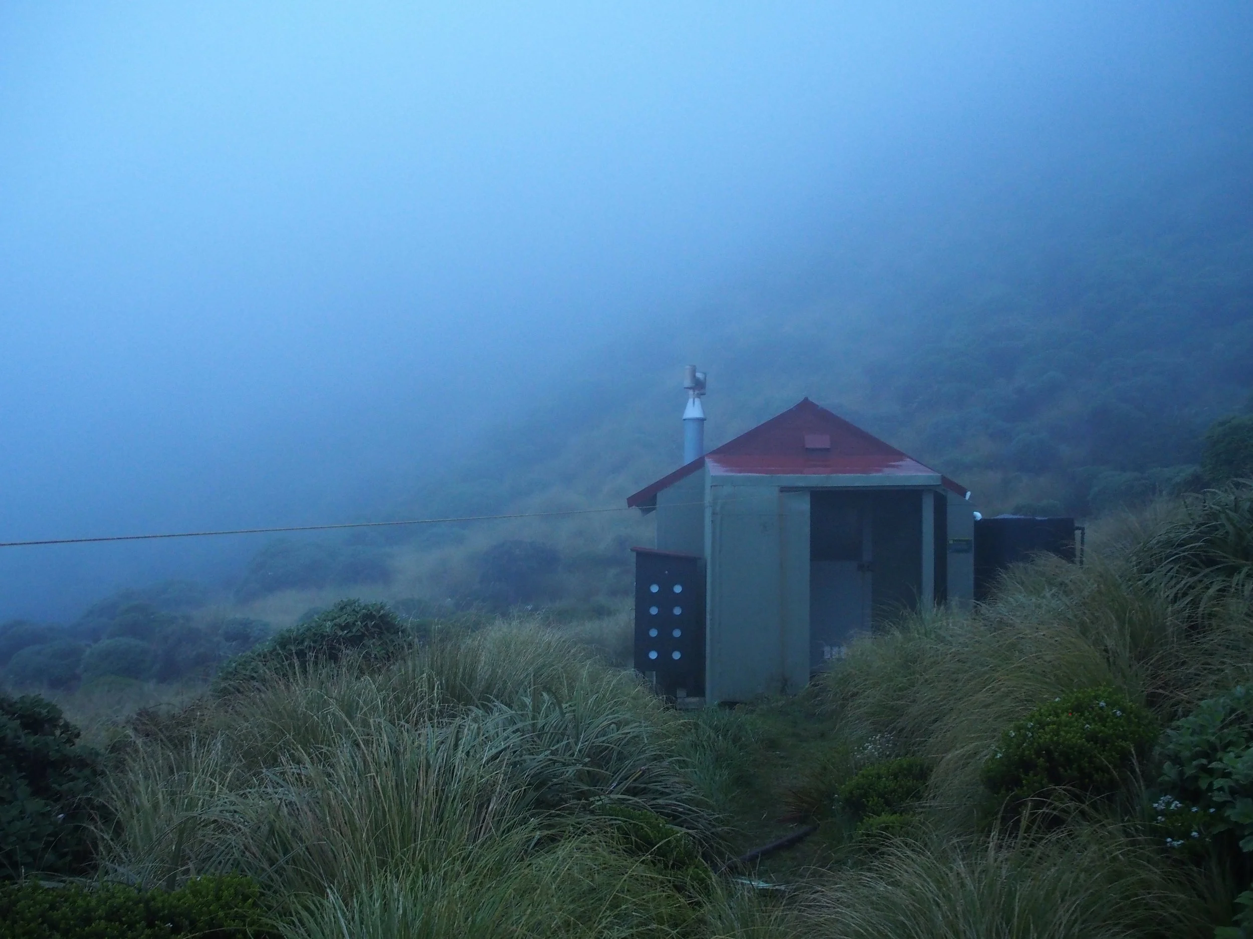 Griggs lähti ensimmäisenä jatkamaan matkaa, minä vähän hänen jälkeensä. Melkein koko loppumatka oli sammaleista peikkometsää, kunnes polku nousi taas yli 1200 metriin, juuri ennen Nichols hutin risteystä. Polku ei kuitenkaan ollut niin vaikeaa kuin olin kuvitellut. Tupa oli vain viisi minuuttia polulta sivuun, vähän alempana rinteessä, joten harjanteella puhaltava kylmä tuuli ei yltänyt sinne. Tässä vaiheessa pilvet olivat ympäröineet harjanteen, ei enää maisemia tälle päivälle. Nichols hutissa oli vain kuusi petipaikkaa, kahdessa kerroksessa.