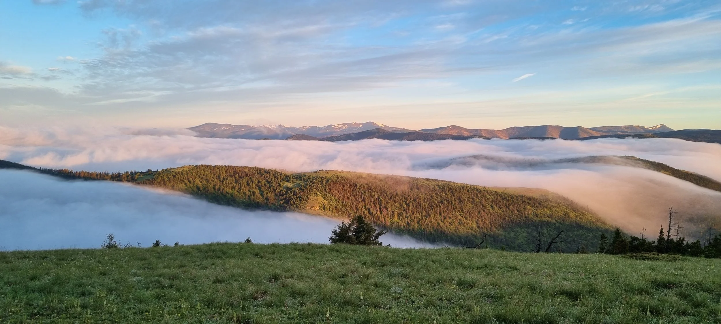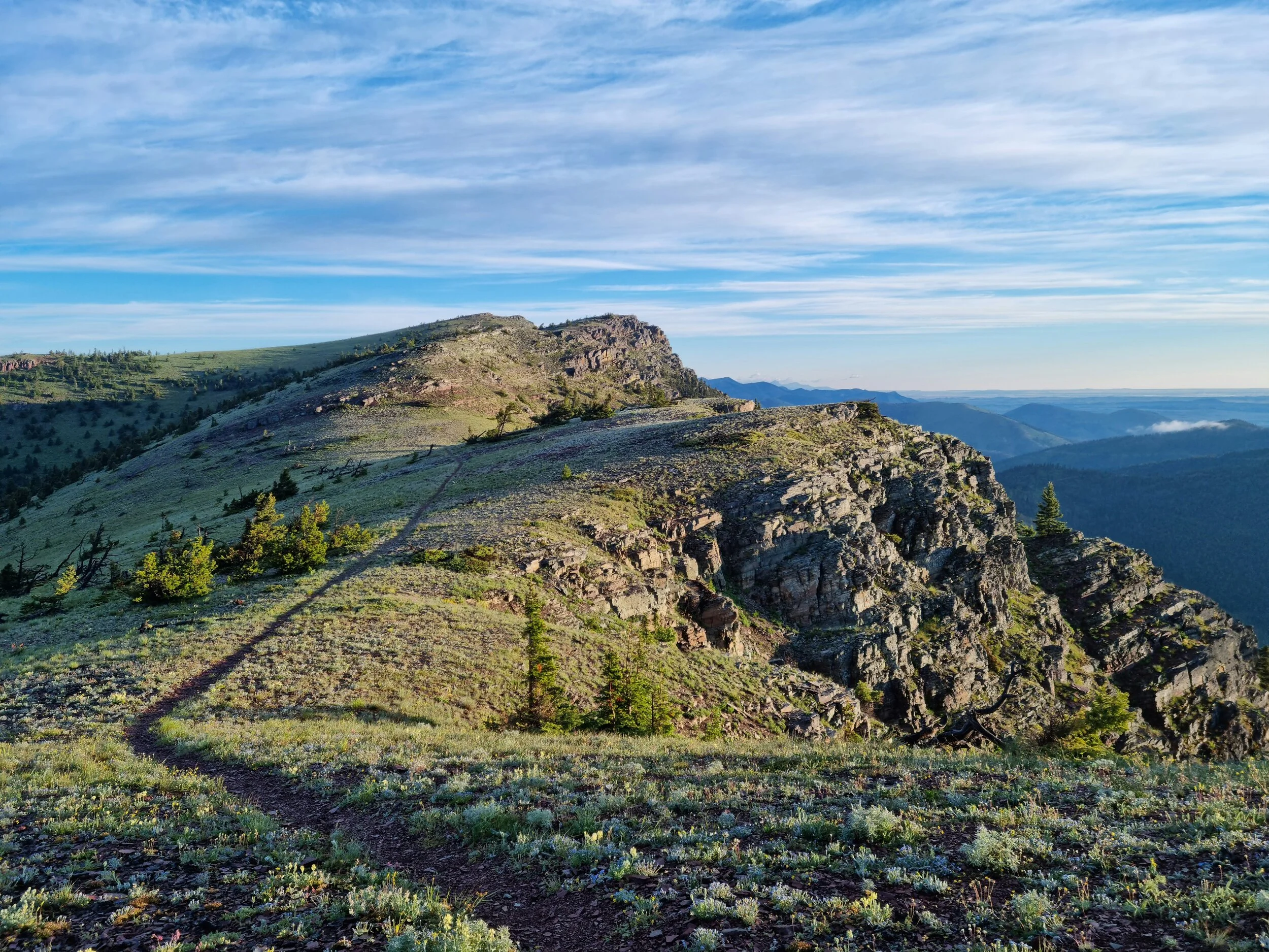 Ainakin ensimmäiset 10 kilometriä polku seuraili taas korkeaa harjanetta. On se vaan aina yhtä hienoa kun on pilvien yläpuolella, oli se sitten vuorilla tai lentokoneessa. Aurinko paistoi eikä eilisistä ukkosmyrskyistä ollut jäljellä muuta kuin kaste, joka sai jo valmiiksi märät kengät vielä vähän märemmiksi.