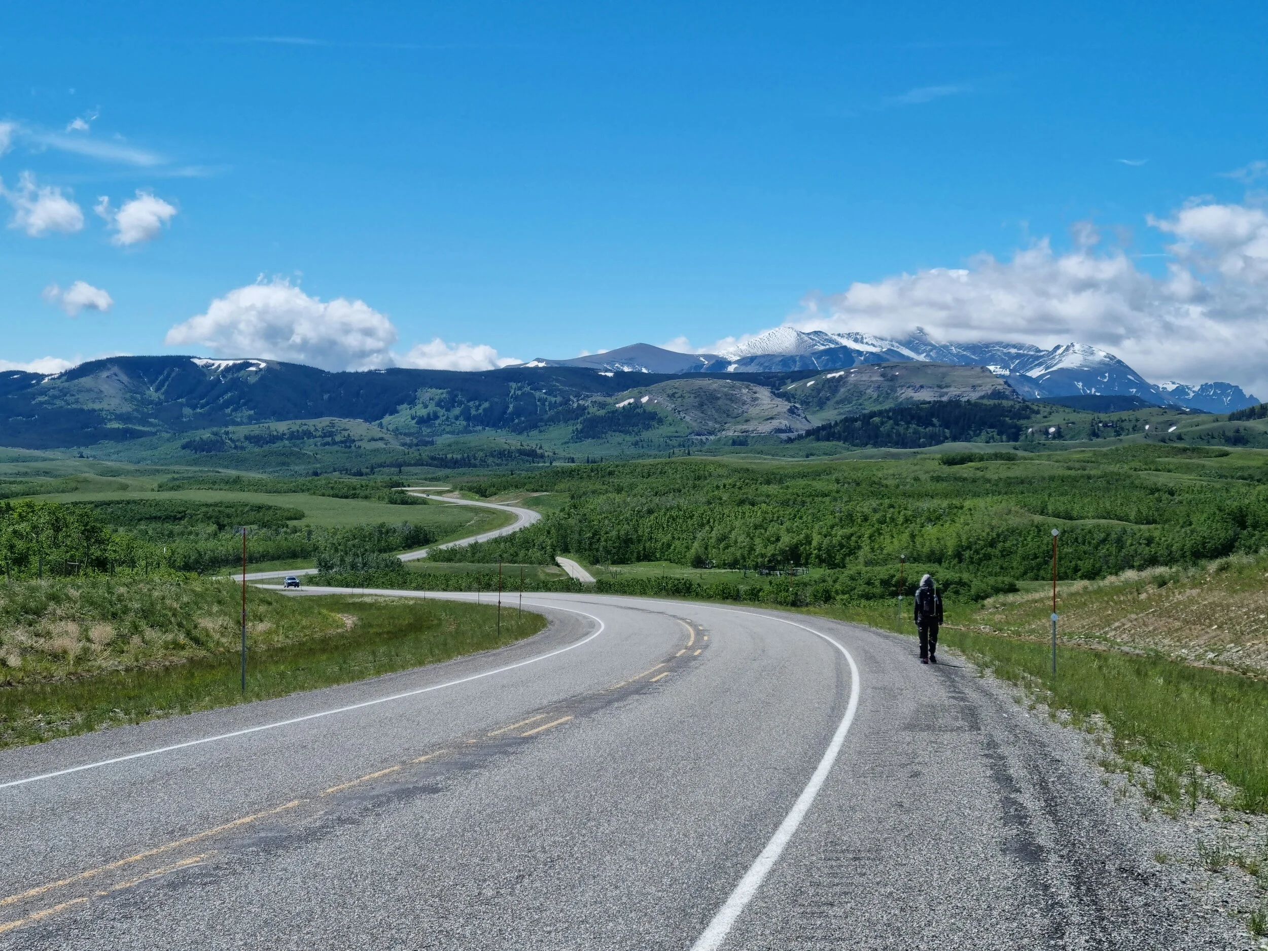 Tiellä kävely olisi ollut huomattavasti tylsempää jos maisemat eivät olisi näin upeita. Pidimme paljon taukoja, valiten sellaiset paikat missä oli hienoimmat näkymät. Päästyämme alemman Two Medicine-järven rantaan heitin kengät pois ja seisoin kylmässä vedessä pitkän aikaa. Asfaltti on kyllä kamalaa kävellä, etenkin näin alkumatkasta kun jalat eivät ole vielä tottuneet pitkiin päiviin. Ihme kyllä en vieläkään saanut rakkoja, Skybirdillä taisi olla ainakin muutama.