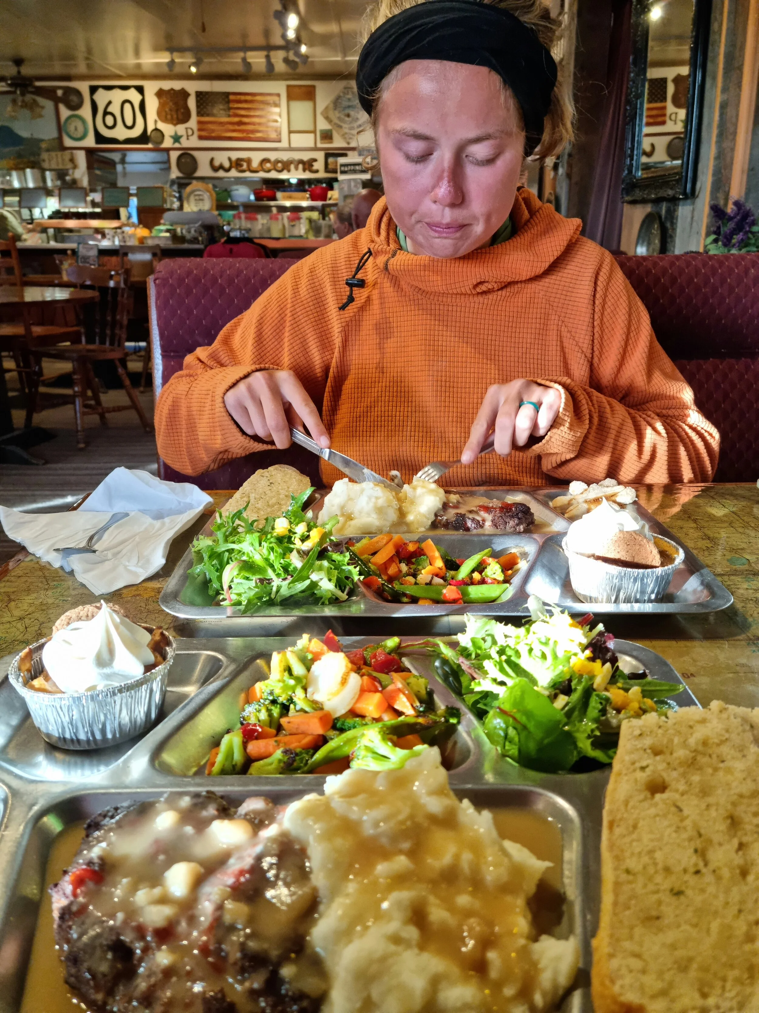 Sääennuste lupasi huonoa säätä; lunta, kovaa tuulta ja vieläkin kylmempää, joten olin jo etukäteen päättänyt että olen Pie Townissa kaksi yötä. Minulla oli myös ruokapaketti postissa odottamassa, senkin takia joutuisin odottamaan maanantaiaamuun. Vain muutama lähti jatkamaan matkaa säätä uhmaten. Päivällä sää oli vielä ihan ok, tuuli vain oli kova. Lumisateen oli ennustettu alkavan illalla.