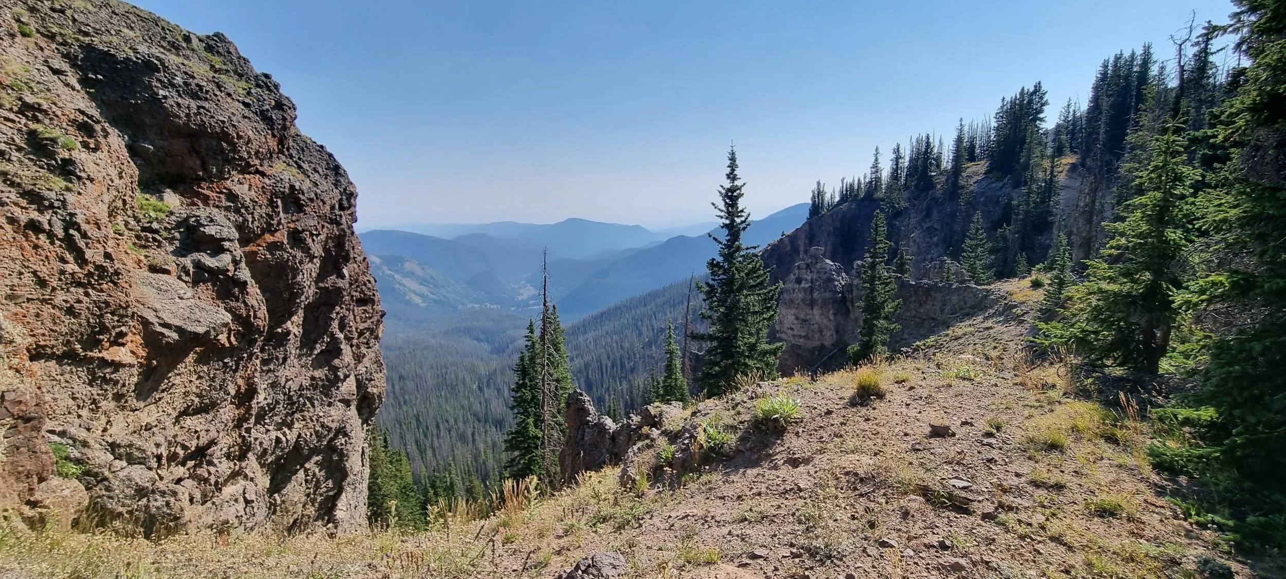 Päivän toiset 20 km olikin sitten polkua, oikein mukavaa sellaista! Korkeuseroja oli aika paljon ja 3500 metrissä pisti puuskuttamaan kun polku kiipesi harjanteelle. Harjanteelta oli hienot näköalat, tosin jostain syystä täällä on tosi utuista. Se voi olla savuakin, vaikka en sitä haistanutkaan. Savu voi tulla tuulten mukana tosi pitkien matkojen päästä, jopa Kaliforniasta asti.