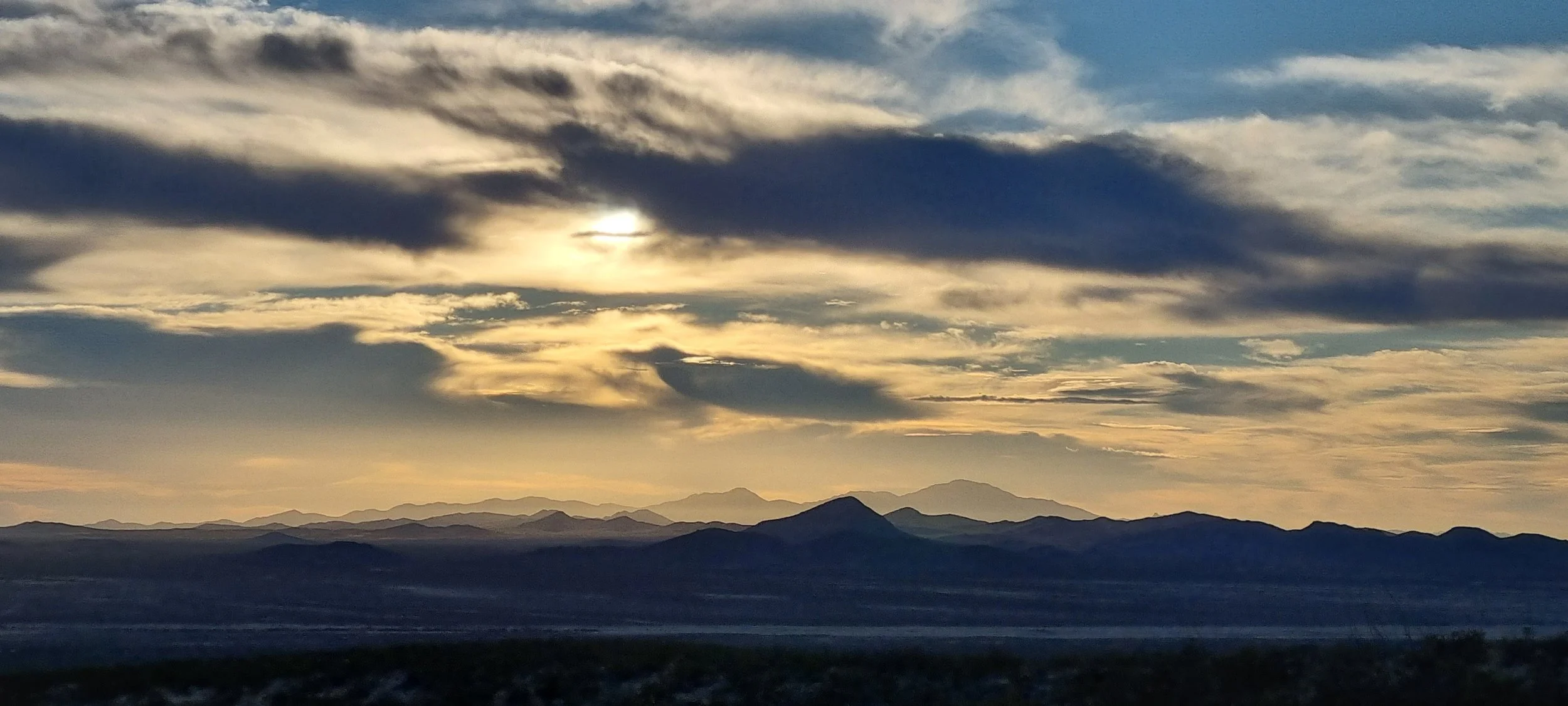 Aamulla matka jatkui vielä vähän aikaa tietä pitkin, sitten siirryimme taas seuraamaan kylttejä poluttomaan maastoon. Edessä päin näkyi Hachita Peak, jonka takana jossain on määränpäämme, Meksikon raja. Ylitimme valtatie yhdeksän, jota pitkin pääsisi Hatchitaan. Se on rajaa lähin “kylä”, jossa ei ilmeisesti ole juuri muuta kuin pieni kyläkauppa ja pari muuta taloa. Jos ei halua maksaa kyydistä rajalta pois, toinen vaihtoehto on kävellä noin 40 km monumentilta takaisin päin tielle 81, joka myös menee Hachitaan, ja liftata sitten sieltä eteenpäin. Tieltä 81 eteenpäin tie on todella huonossa kunnossa ja vaatii maasturin. 81:n ylityksen jälkeen saimme vielä tehdä valinnan “polun” ja tiellä kävelyn välillä, valitsimme tien koska olimme saaneet tarpeeksi piikkipuskista. Tie kulki Big Hatchet-vuoria myötäillen kohti kaakkoa, kunnes sukelsi kuivaa joenuomaa pitkin vuorten väliin. Illan hämärtyessä seurasimme uomaa vuorten toiselle puolelle. Ilta oli lämmin, sirkat alkoivat sirittää ja täysikuu valaisi niin kirkkaasti että otsalamppuakaan ei oikeastaan tarvinnut.