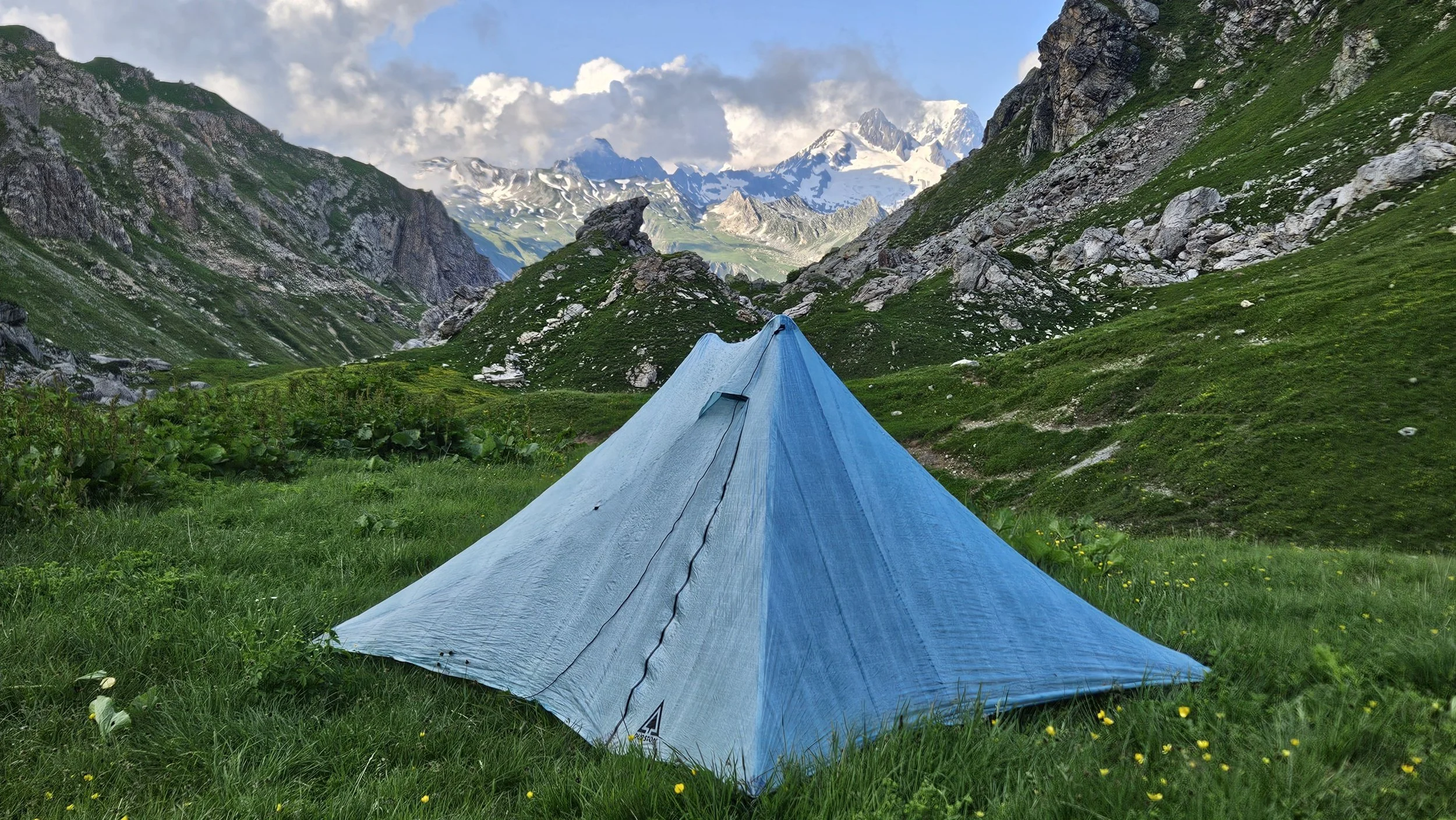 Pidin lounastauon Bonhommen majan pihassa ja jatkoin sitten harjanteelle, jota olin ihaillen katsellut jo viikko sitten. Se oli hieno! Harjanteelta polku lähti toki alaspäin, kuinkas muutenkaan. Alamäki alas, ylämäki ylös, toista kunnes et enää jaksa. Joitakin kilometrejä jouduin kävelemään tietä pitkin, ennen kuin reitti muuttui poluksi ja lähti seuraamaan nopeasti virtaavaa jokea ylävirtaan. En halunnut nousta nousta kovin korkealle, koska oli jo aika etsiä telttapaikkaa. Sopiva onneksi löytyi helposti pehmeältä nurmelta puron lähettyviltä.