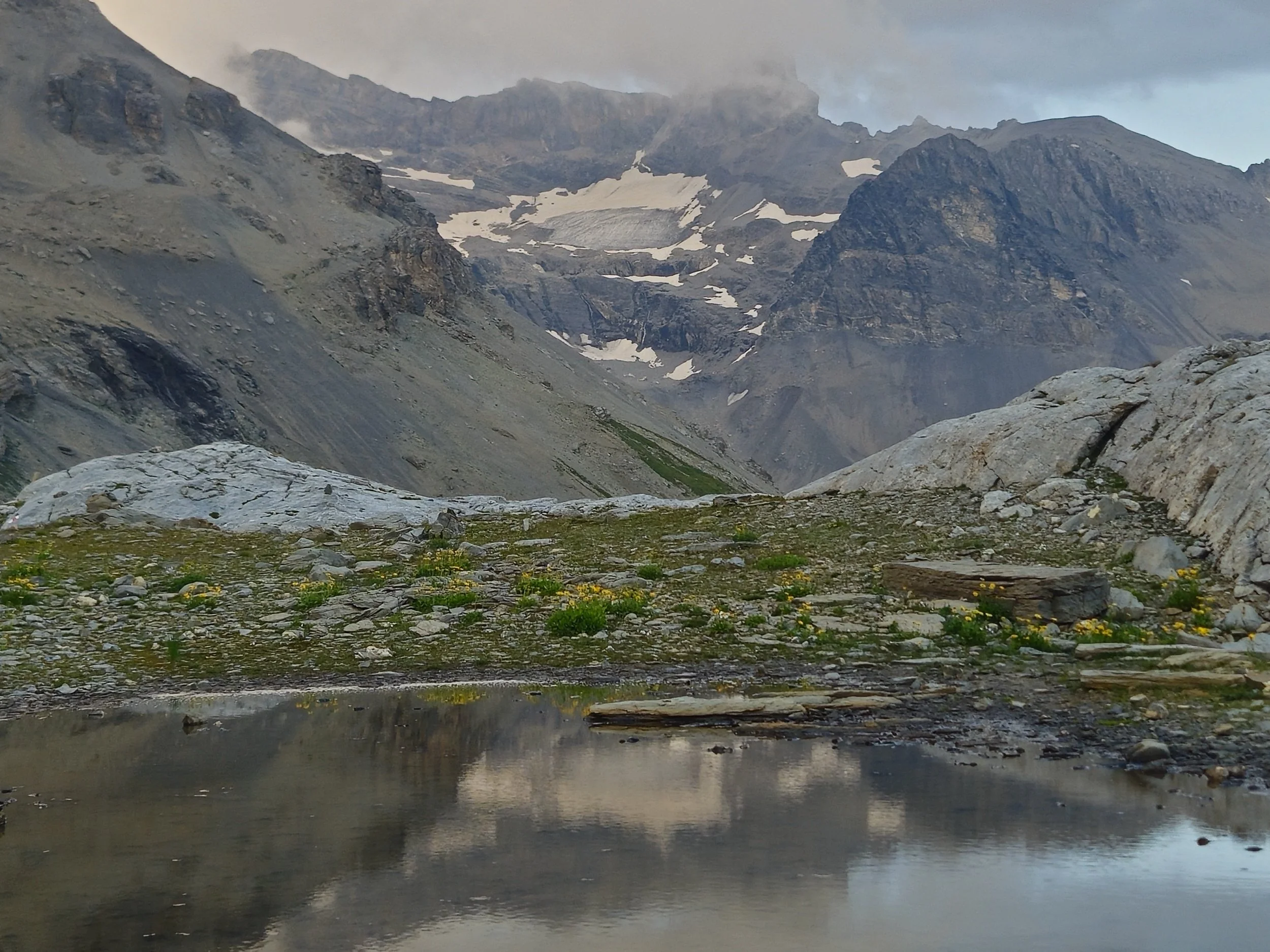 Pastan ja illan myötä laskevan lämpötilan innoittamana nousin reippaasti seuraavaan solaan, jonka ylitin säkkipimeässä. Col des Audannes (2892 m) olikin vähän jännempi ylittää, jyrkkiin kohtiin oli viritetty köysiä ja tikkaita, välillä polku oli hyvin kapea ja vieressä oli jyrkkä pudotus pimeyteen. Oman lamppuni valokeilan lisäksi näin vain kaukana laakson pohjalla näkyvät valot. Oli ehkä ihan hyväkin, etten nähnyt kuinka kauaksi tästä olisi tippunut, jos jalka lipeäisi. Solan toisella puolella olin onnellinen kunnollisesta lampusta (Petzl Nao RL), reitti oli nimittäin merkitty tolpilla, jotka olivat aika kaukana toisistaan, eikä polkua ollut. Saapuessani Cabane des Audannesin vuoristomajalle (127,7 km) söin vähän ja kömmin saman tien makuusaliin nukkumaan. Unet jäi kyllä vähiin, koska salissa oli useampi kovaääninen kuorsaaja ja minulla meni nenä tukkoon heti kun menin makuulle. En osaa oikein nukkua jos en voi hengittää nenän kautta, varsinkaan nyt kun suuta kuivaa jo valmiiksi. Olin siinä pyöriessä kuullut kun useampi lähti jatkamaan matkaa ennen minua ja kun hiivin alakertaan joskus neljän maissa aamuyöllä, aamupalapöytä oli tyhjennetty täysin. Ainoa mitä löysin, oli kuuma vesi ja maustamatonta jogurttia. Seuraavaan huoltopisteeseen olisi melkein 20 kilometriä, mutta ei auttanut muu kuin lähteä taas nälkäisenä matkaan. Onneksi minulla oli omia eväitä jonkun verran. Olin kuullut paljon kehuja Swiss Peaksin ruokahuollosta, mutta tähän mennessä en kyllä ollut saanut vielä mitään, mikä olisi ansainnut erityisiä kehuja.